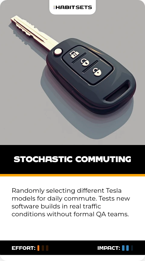 Randomly selecting different Tesla models for daily commute. Tests new software builds in real traffic conditions without formal QA teams.