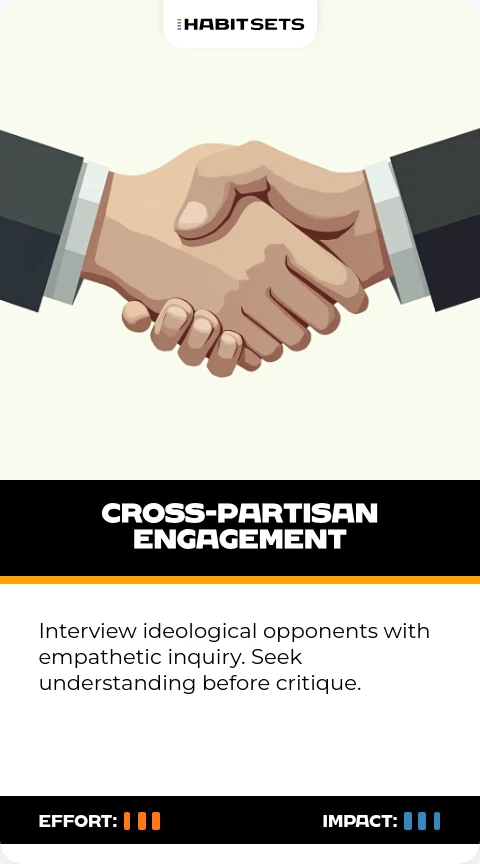 Interview ideological opponents with empathetic inquiry. Seek understanding before critique.