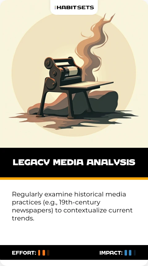 Regularly examine historical media practices (e.g., 19th-century newspapers) to contextualize current trends.