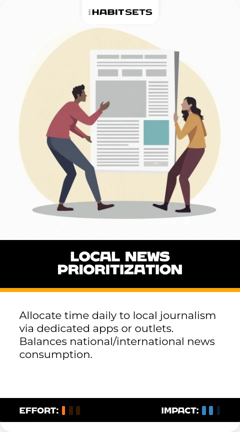 Allocate time daily to local journalism via dedicated apps or outlets. Balances national/international news consumption.