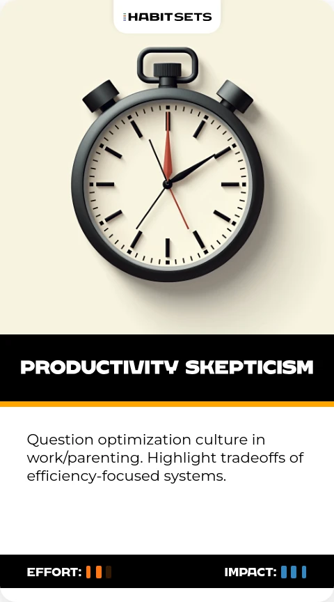 Question optimization culture in work/parenting. Highlight tradeoffs of efficiency-focused systems.