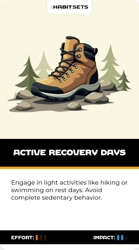 Engage in light activities like hiking or swimming on rest days. Avoid complete sedentary behavior.