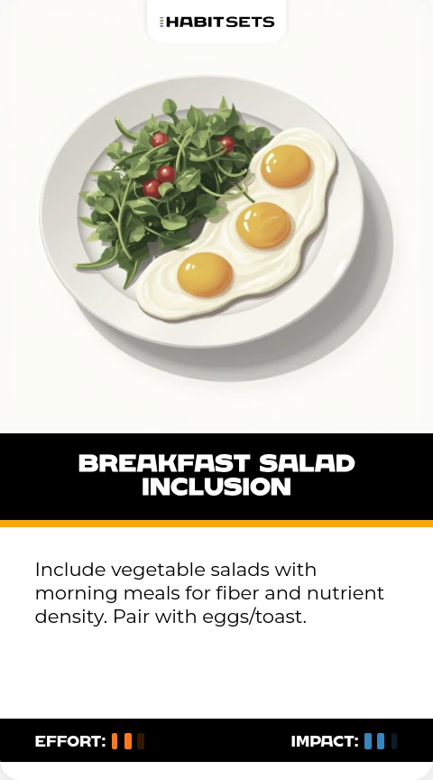 Include vegetable salads with morning meals for fiber and nutrient density. Pair with eggs/toast.