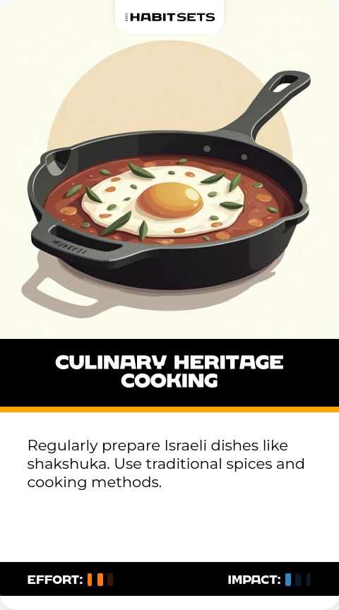 Regularly prepare Israeli dishes like shakshuka. Use traditional spices and cooking methods.