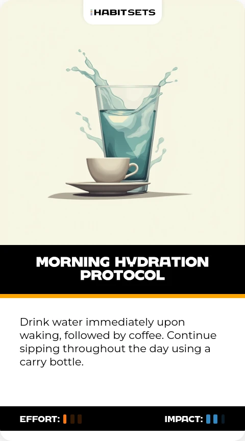 Drink water immediately upon waking, followed by coffee. Continue sipping throughout the day using a carry bottle.