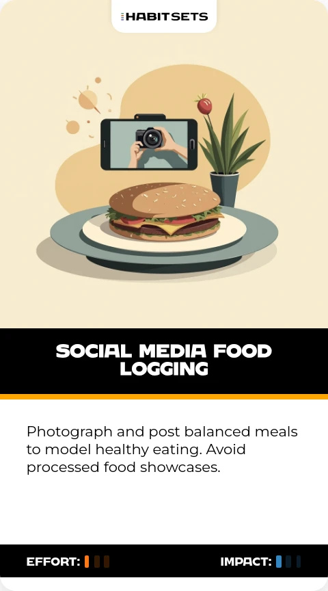 Photograph and post balanced meals to model healthy eating. Avoid processed food showcases.