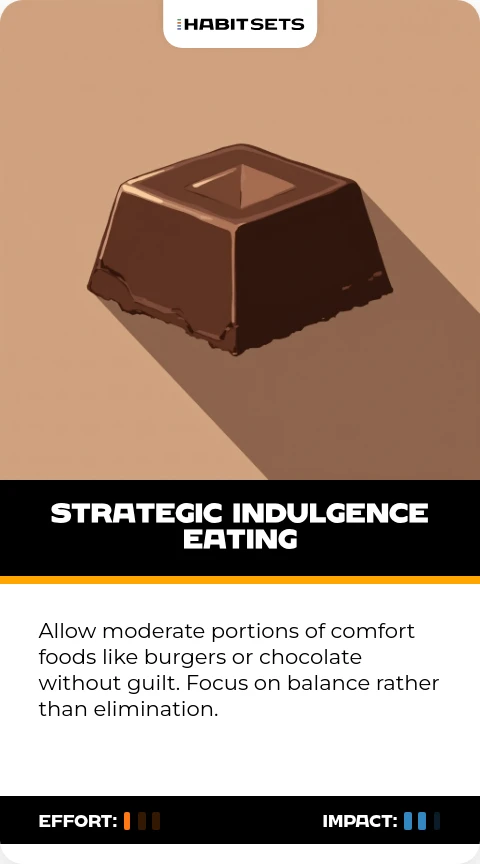 Allow moderate portions of comfort foods like burgers or chocolate without guilt. Focus on balance rather than elimination.