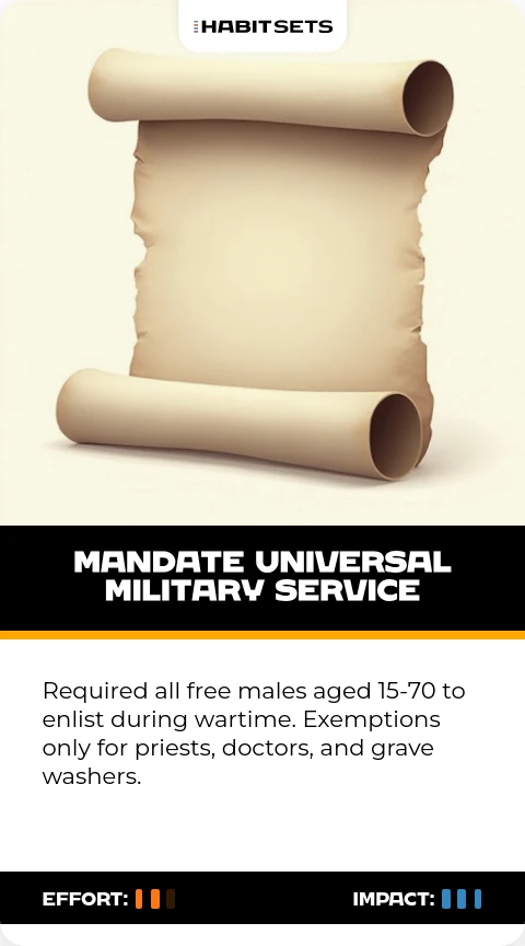 Required all free males aged 15-70 to enlist during wartime. Exemptions only for priests, doctors, and grave washers.