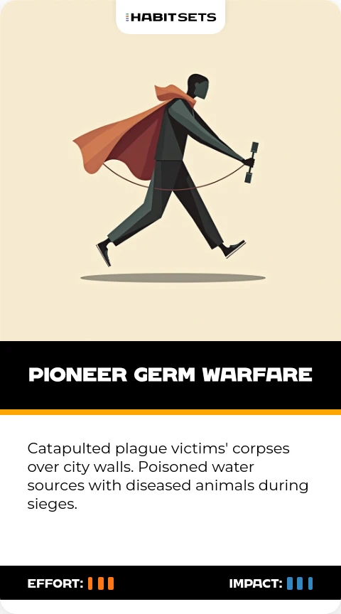 Genghis Khan used biological tactics to demoralize enemies. This habit accelerated surrenders without direct assaults[5][7].