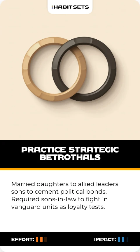 Married daughters to allied leaders' sons to cement political bonds. Required sons-in-law to fight in vanguard units as loyalty tests.