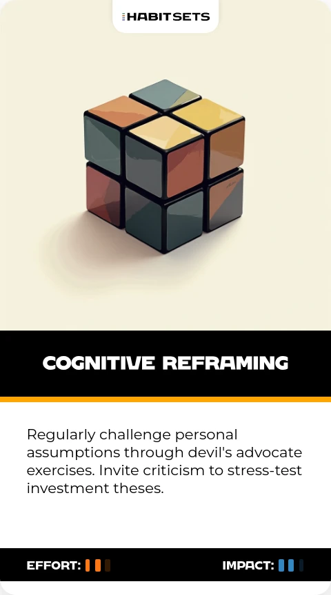 - Embrace Intellectual Humility: Cognitive Reframing. Constantly challenge your own assumptions and invite criticism to stress-test your investment theses and maintain intellectual flexibility.