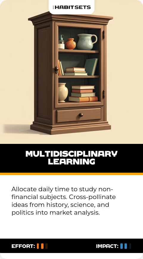 Allocate daily time to study non-financial subjects. Cross-pollinate ideas from history, science, and politics into market analysis.