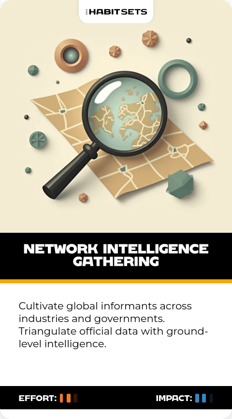 Cultivate global informants across industries and governments. Triangulate official data with ground-level intelligence.