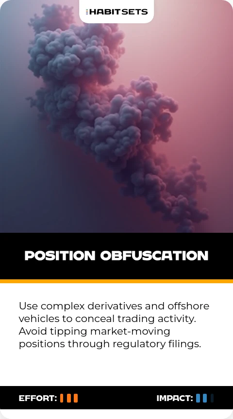 Use complex derivatives and offshore vehicles to conceal trading activity. Avoid tipping market-moving positions through regulatory filings.