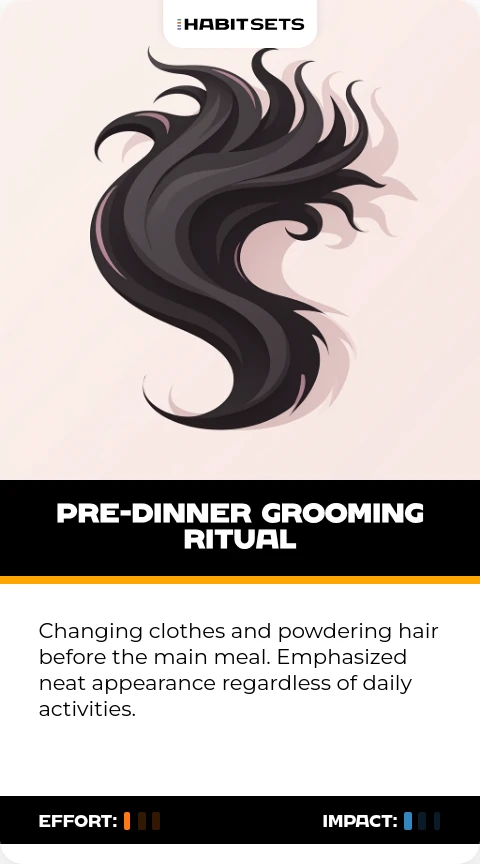 Changing clothes and powdering hair before the main meal. Emphasized neat appearance regardless of daily activities.