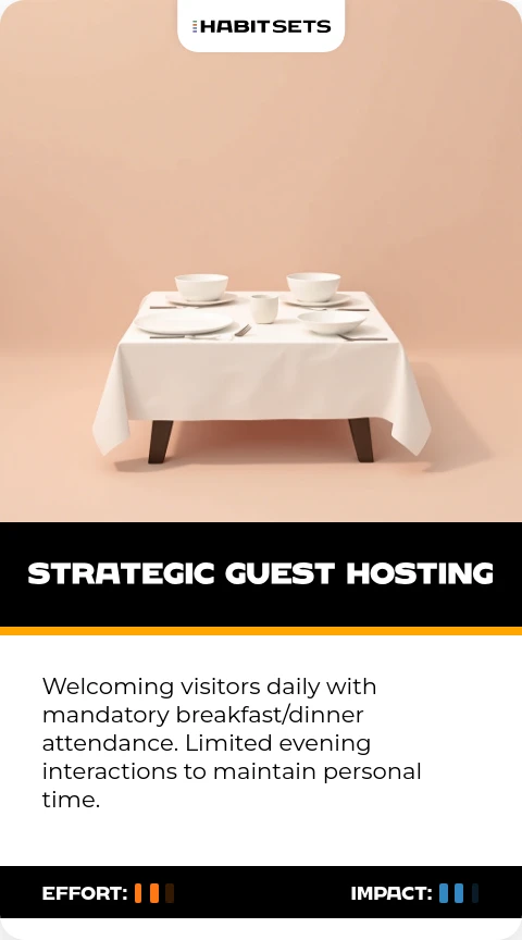 Welcoming visitors daily with mandatory breakfast/dinner attendance. Limited evening interactions to maintain personal time.