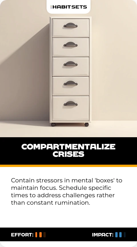 Contain stressors in mental 'boxes' to maintain focus. Schedule specific times to address challenges rather than constant rumination.