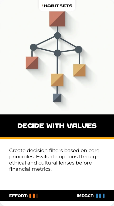 Create decision filters based on core principles. Evaluate options through ethical and cultural lenses before financial metrics.