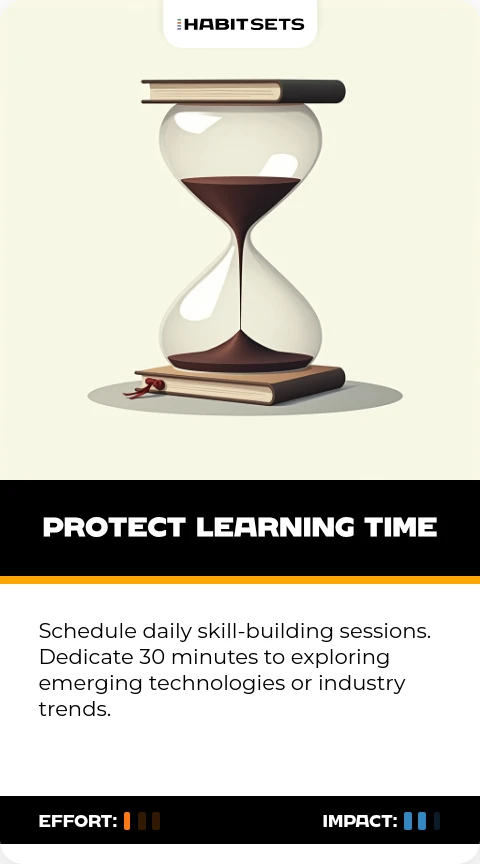 Schedule daily skill-building sessions. Dedicate 30 minutes to exploring emerging technologies or industry trends.