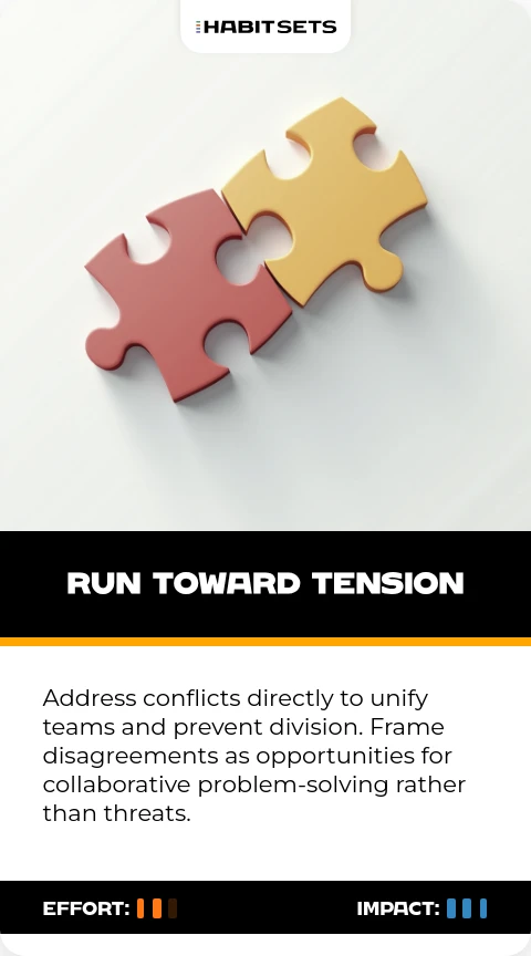 - Run Toward Tension: Address conflicts head-on to build stronger, more unified teams.