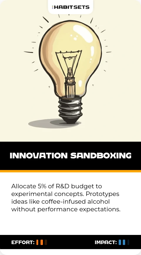 Allocate 5% of R&D budget to experimental concepts. Prototypes ideas like coffee-infused alcohol without performance expectations.