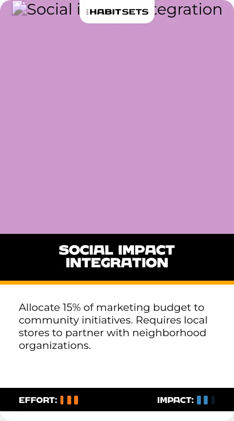 Allocate 15% of marketing budget to community initiatives. Requires local stores to partner with neighborhood organizations.
