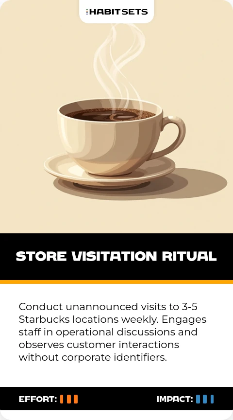 Schultz resists quarterly capitalism pressures through this habit. It maintains Starbucks' premium positioning despite market fluctuations.