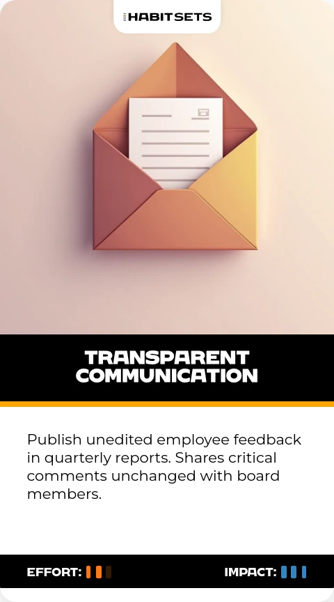 Publish unedited employee feedback in quarterly reports. Shares critical comments unchanged with board members.