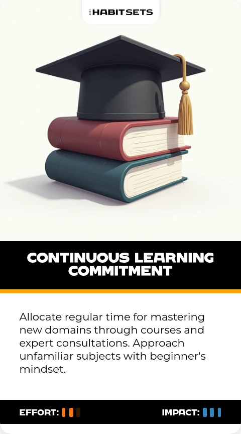 Allocate regular time for mastering new domains through courses and expert consultations. Approach unfamiliar subjects with beginner's mindset.