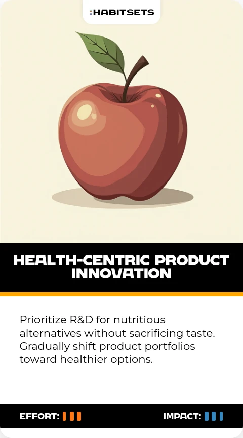 Prioritize R&D for nutritious alternatives without sacrificing taste. Gradually shift product portfolios toward healthier options.