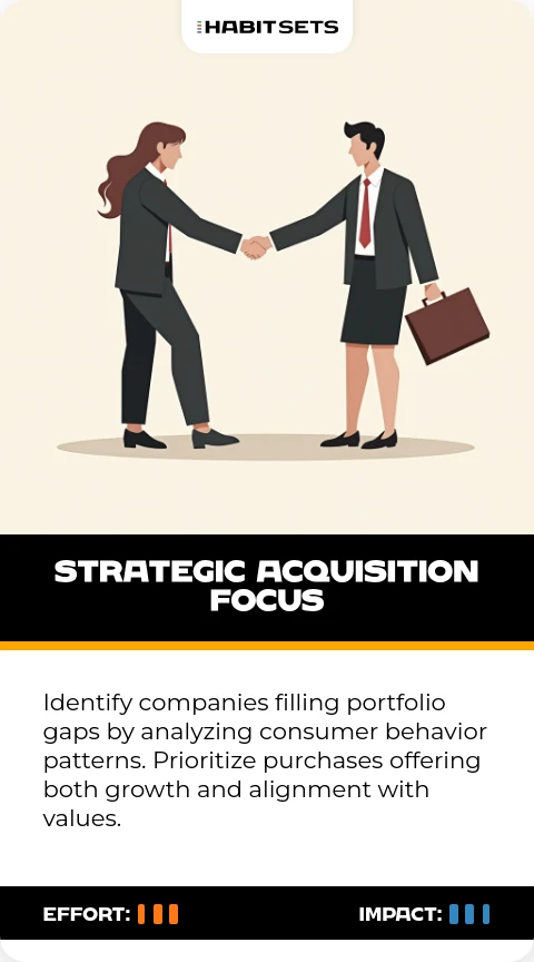 Identify companies filling portfolio gaps by analyzing consumer behavior patterns. Prioritize purchases offering both growth and alignment with values.
