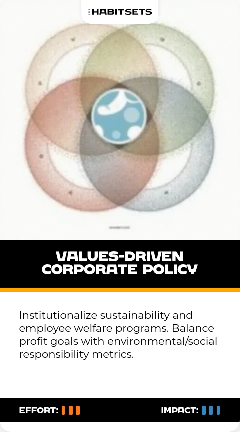 Institutionalize sustainability and employee welfare programs. Balance profit goals with environmental/social responsibility metrics.