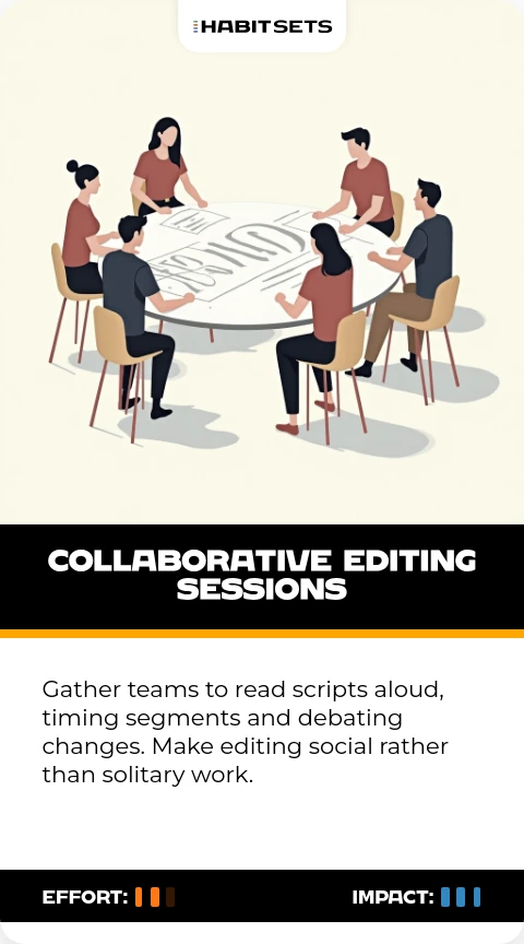 Gather teams to read scripts aloud, timing segments and debating changes. Make editing social rather than solitary work.