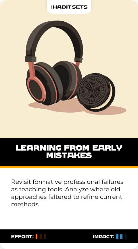 Revisit formative professional failures as teaching tools. Analyze where old approaches faltered to refine current methods.