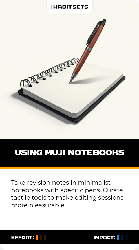 Take revision notes in minimalist notebooks with specific pens. Curate tactile tools to make editing sessions more pleasurable.