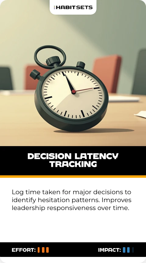 Log time taken for major decisions to identify hesitation patterns. Improves leadership responsiveness over time.