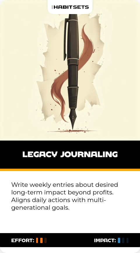 Write weekly entries about desired long-term impact beyond profits. Aligns daily actions with multi-generational goals.
