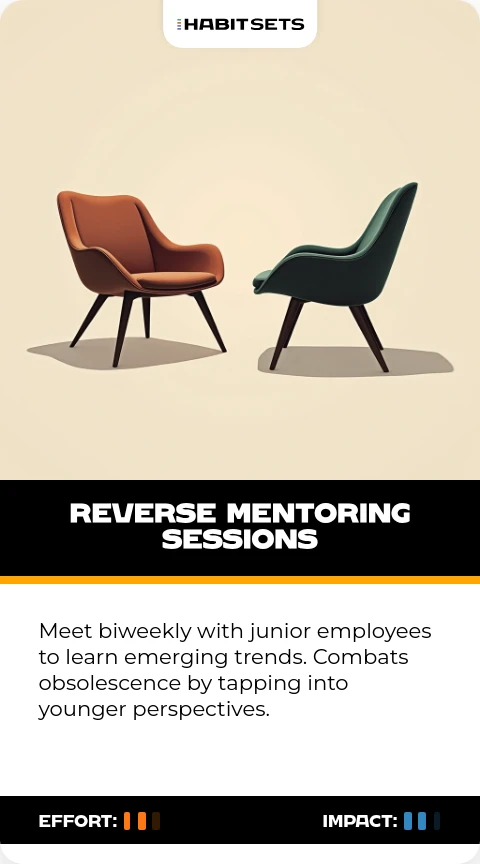 Meet biweekly with junior employees to learn emerging trends. Combats obsolescence by tapping into younger perspectives.