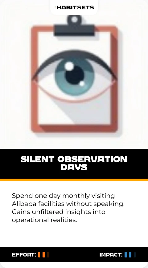 Spend one day monthly visiting Alibaba facilities without speaking. Gains unfiltered insights into operational realities.