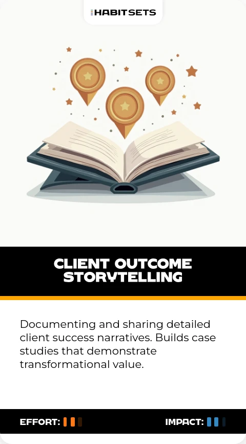 Documenting and sharing detailed client success narratives. Builds case studies that demonstrate transformational value.