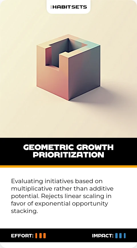 Evaluating initiatives based on multiplicative rather than additive potential. Rejects linear scaling in favor of exponential opportunity stacking.