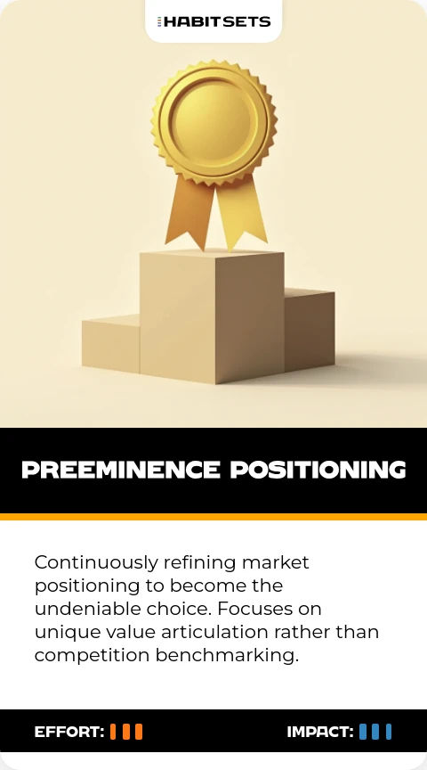 - Preeminence Positioning: Focus on becoming the undeniable market leader by delivering exceptional value and solving clients' deepest needs.