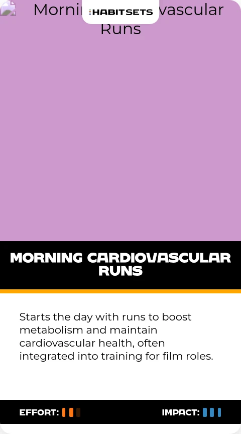 Starts the day with runs to boost metabolism and maintain cardiovascular health, often integrated into training for film roles.