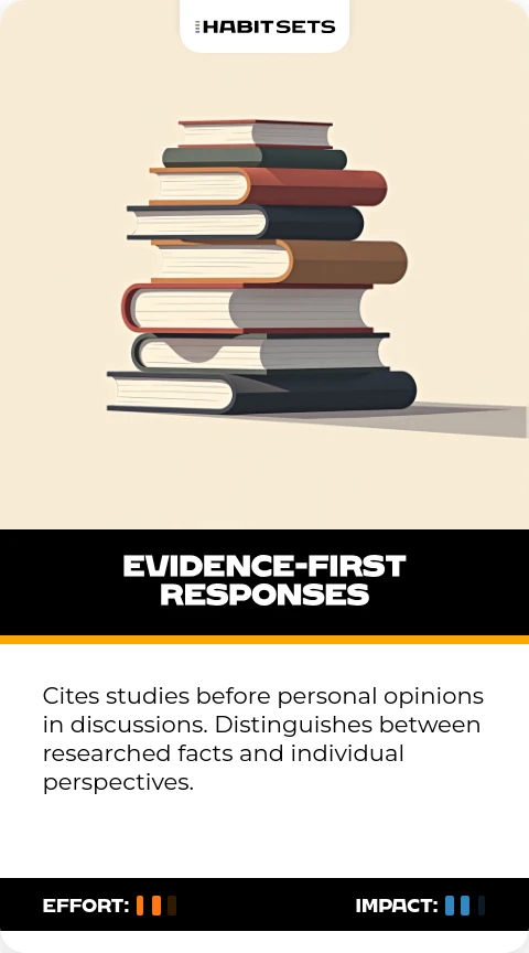 Cites studies before personal opinions in discussions. Distinguishes between researched facts and individual perspectives.