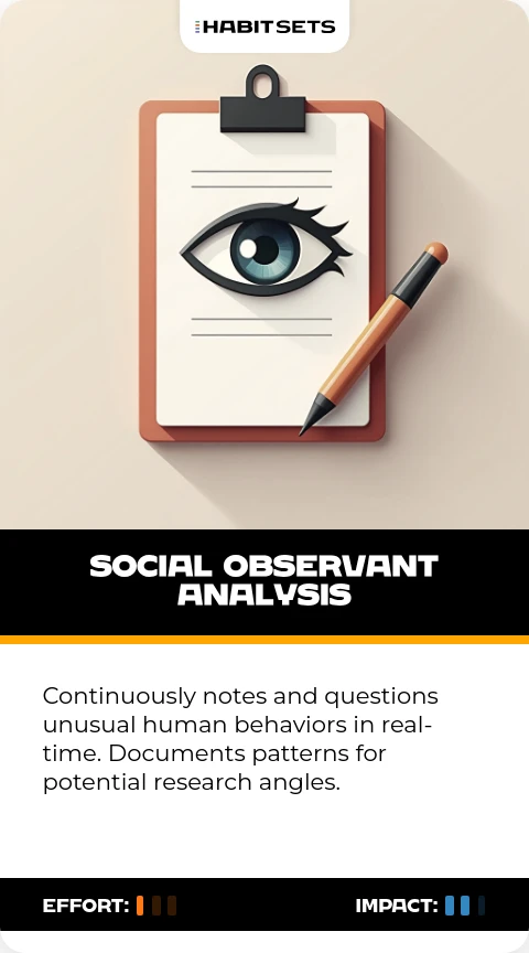 Continuously notes and questions unusual human behaviors in real-time. Documents patterns for potential research angles.