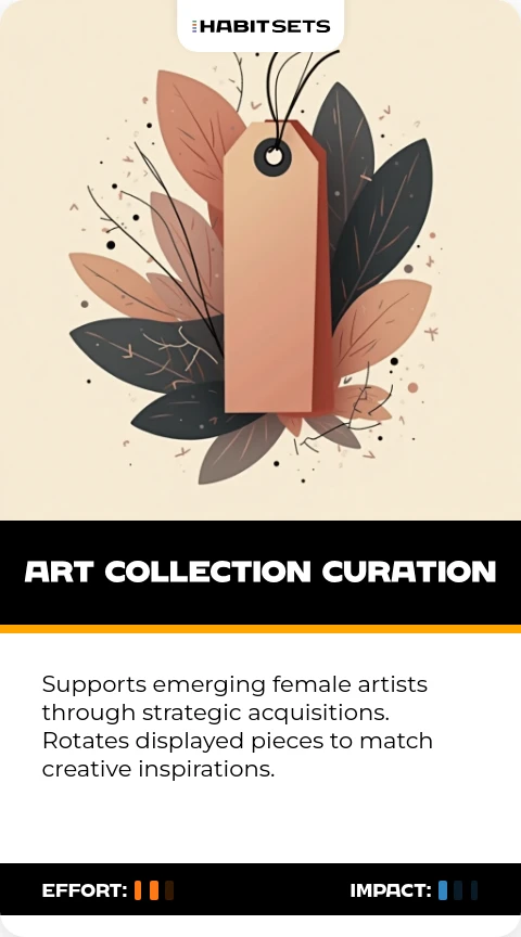 Supports emerging female artists through strategic acquisitions. Rotates displayed pieces to match creative inspirations.