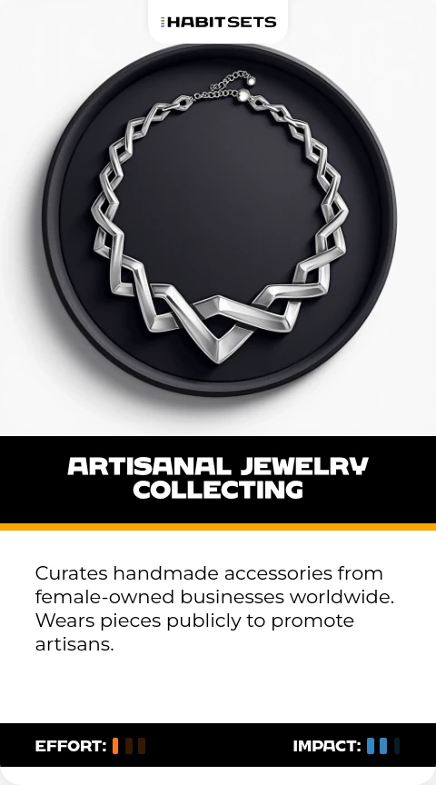 Curates handmade accessories from female-owned businesses worldwide. Wears pieces publicly to promote artisans.