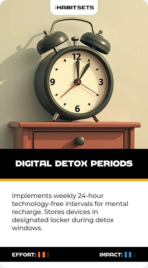 Implements weekly 24-hour technology-free intervals for mental recharge. Stores devices in designated locker during detox windows.