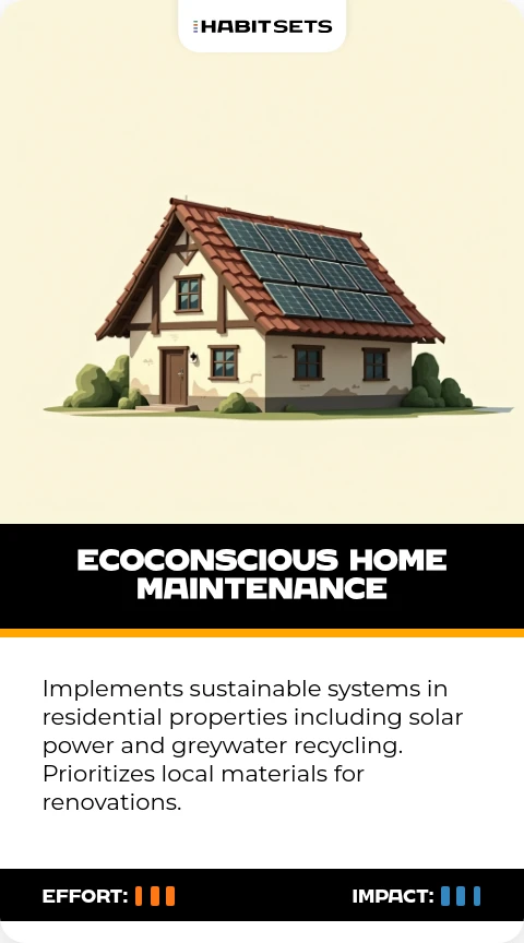 Implements sustainable systems in residential properties including solar power and greywater recycling. Prioritizes local materials for renovations.