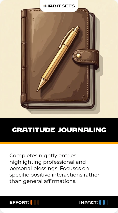 Completes nightly entries highlighting professional and personal blessings. Focuses on specific positive interactions rather than general affirmations.